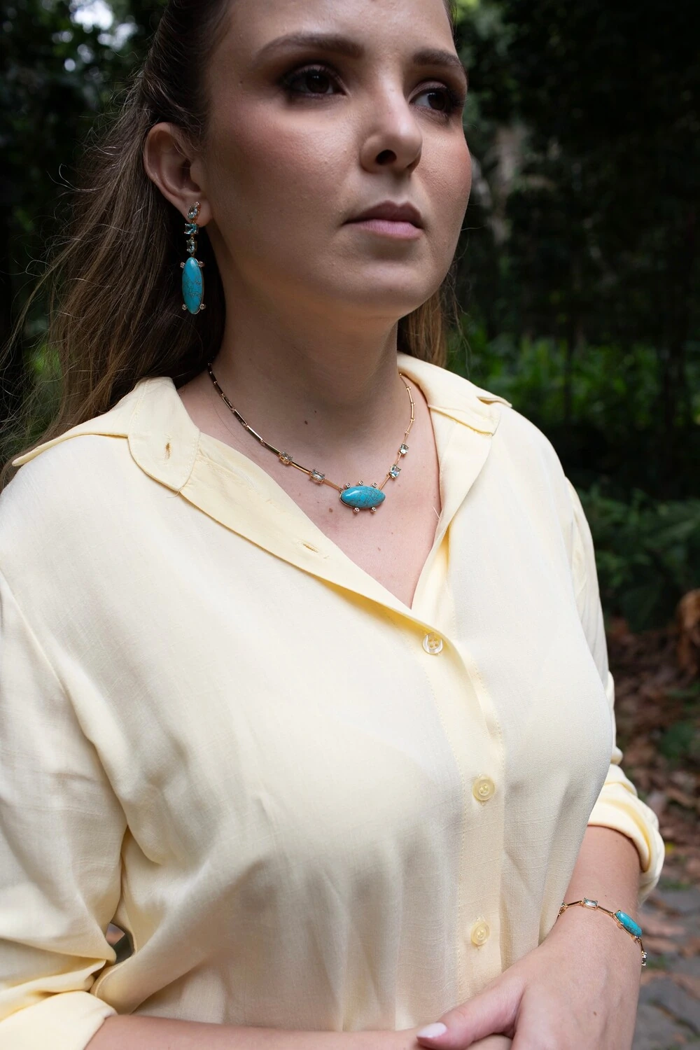 O Conjunto Turquesa Acqua combina a vivacidade da turquesa com a leveza dos tons inspirados na água. Com design elegante e brilho delicado, as peças transmitem frescor, naturalidade e sofisticação. Uma composição harmoniosa, perfeita para trazer cor e leveza ao visual com estilo.