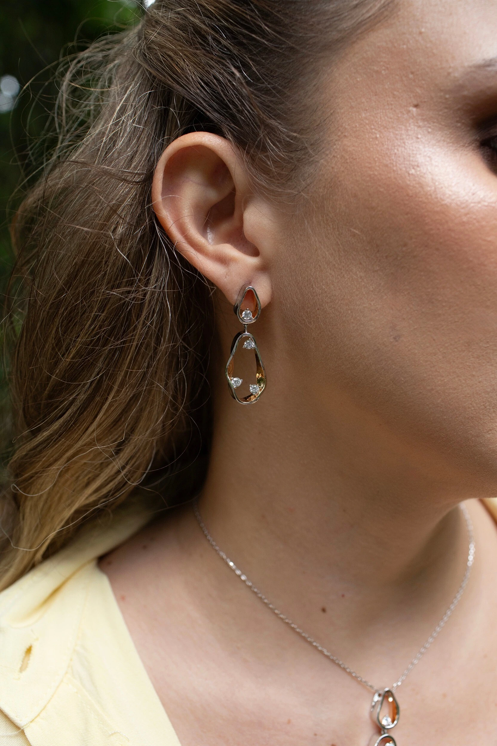 Brinco com design fluido e elegante, ideal para realçar seu visual.