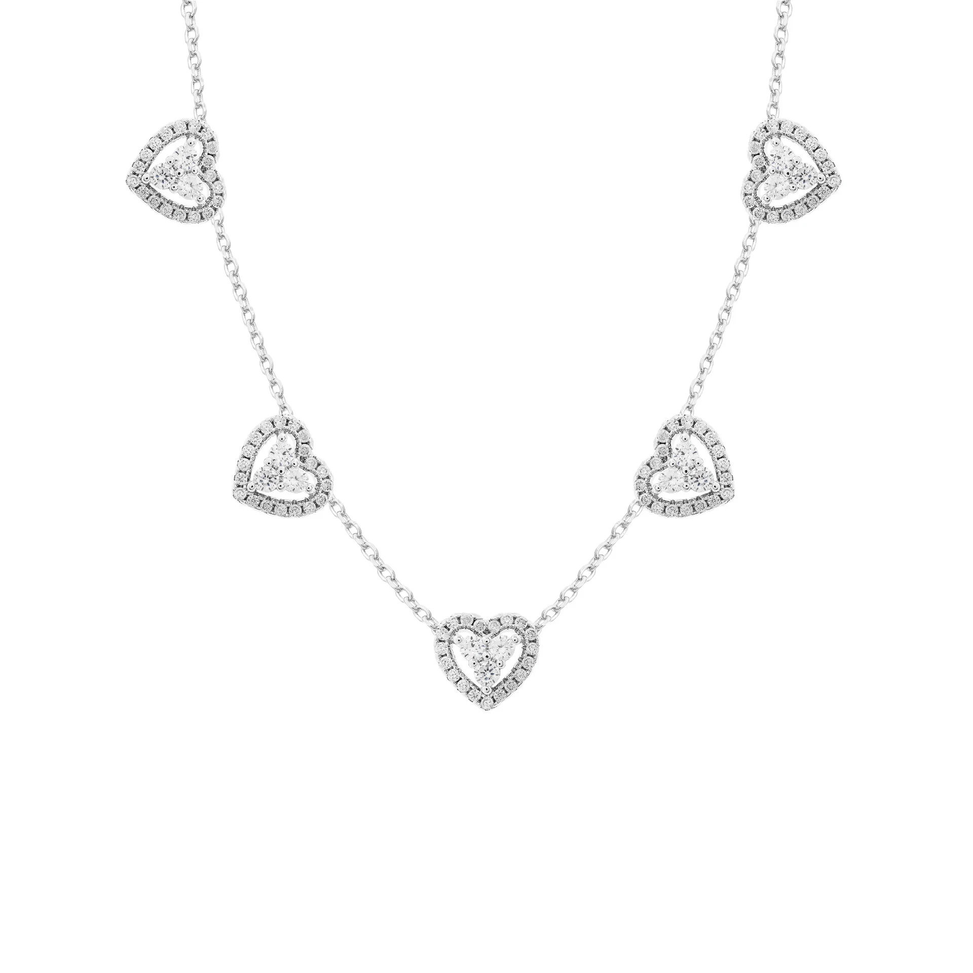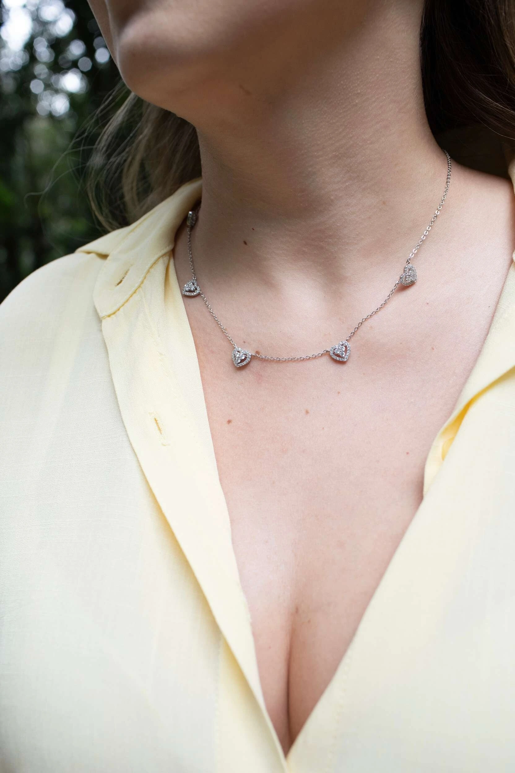 Colar delicado com pingentes em formato de coração, simbolizando carinho e afeto.