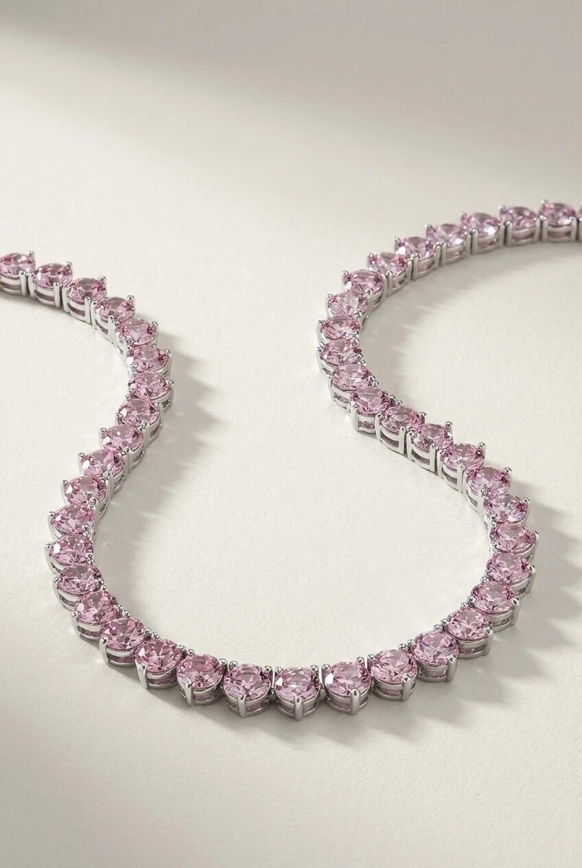 Riviera rosa com brilho delicado, elegante e romântica.