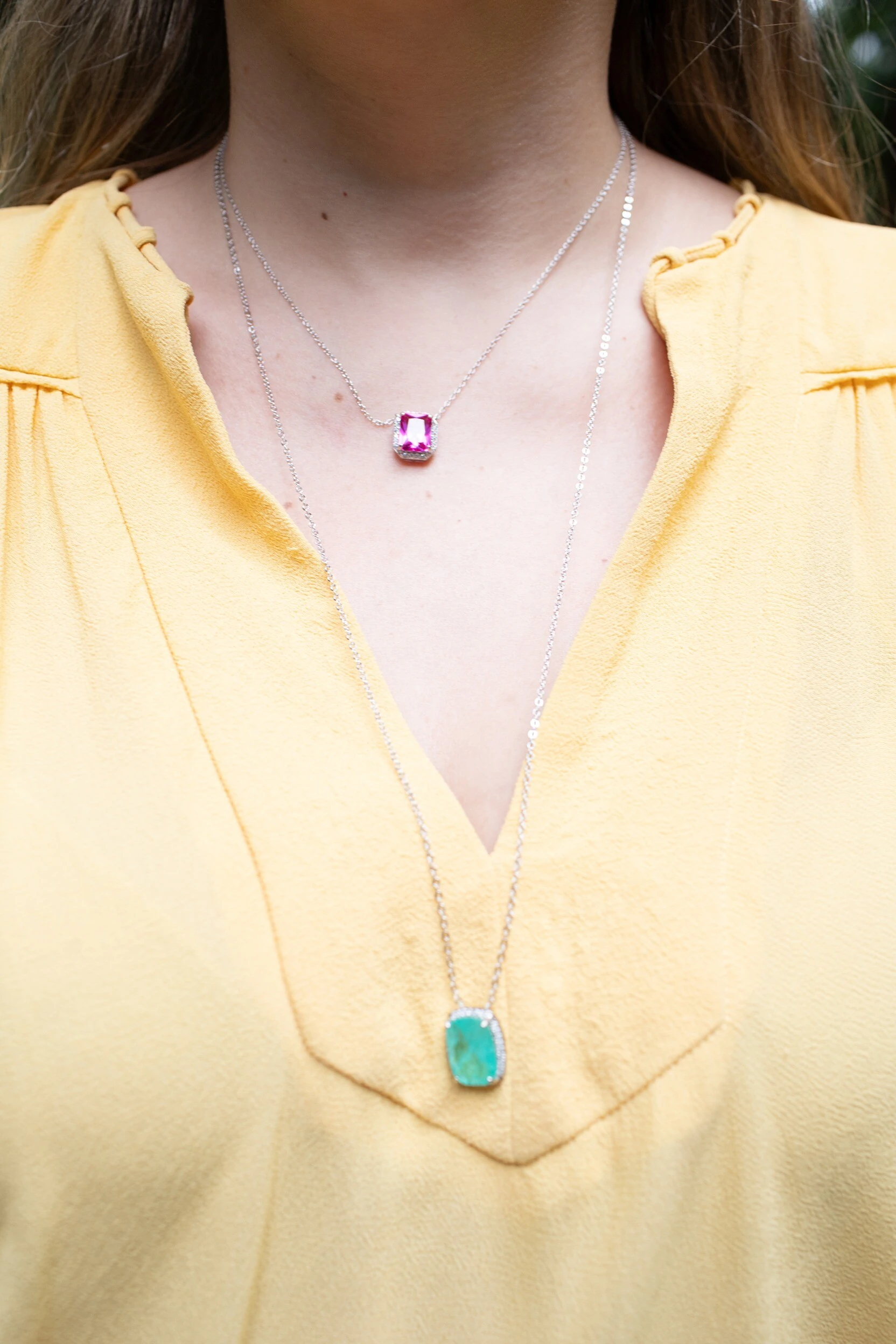 zirconia na cor Safira pink com 8mm em lapidação precisa, emoldurada por brilho delicado. Um ponto de cor elegante que ilumina o visual com sofisticação sutil.